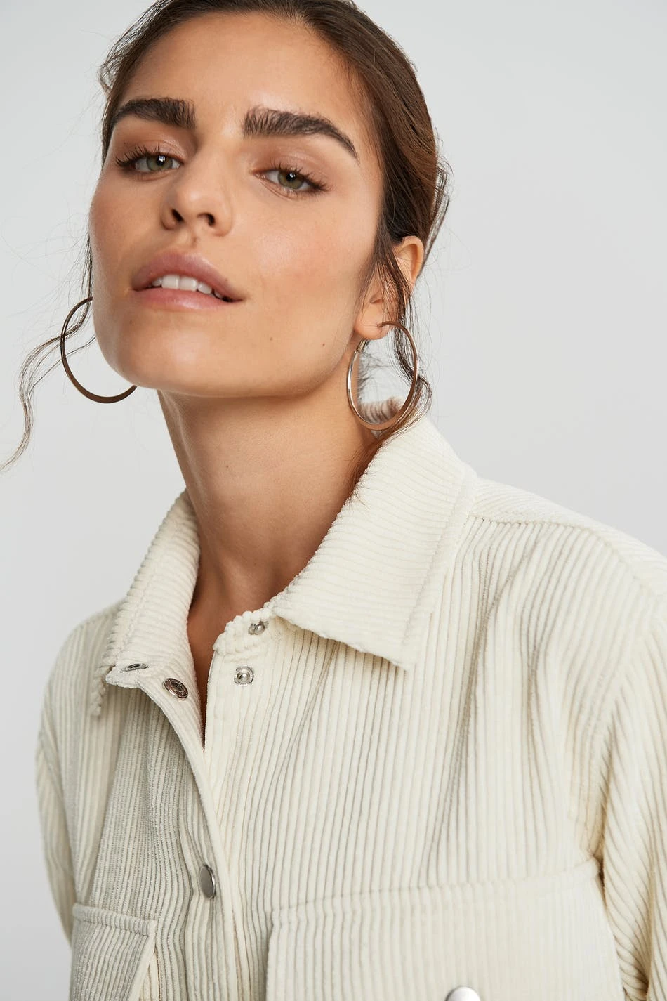 Shirt with corduroy fabric. The shirt is beige and has pockets at the front. It has snap buttons.