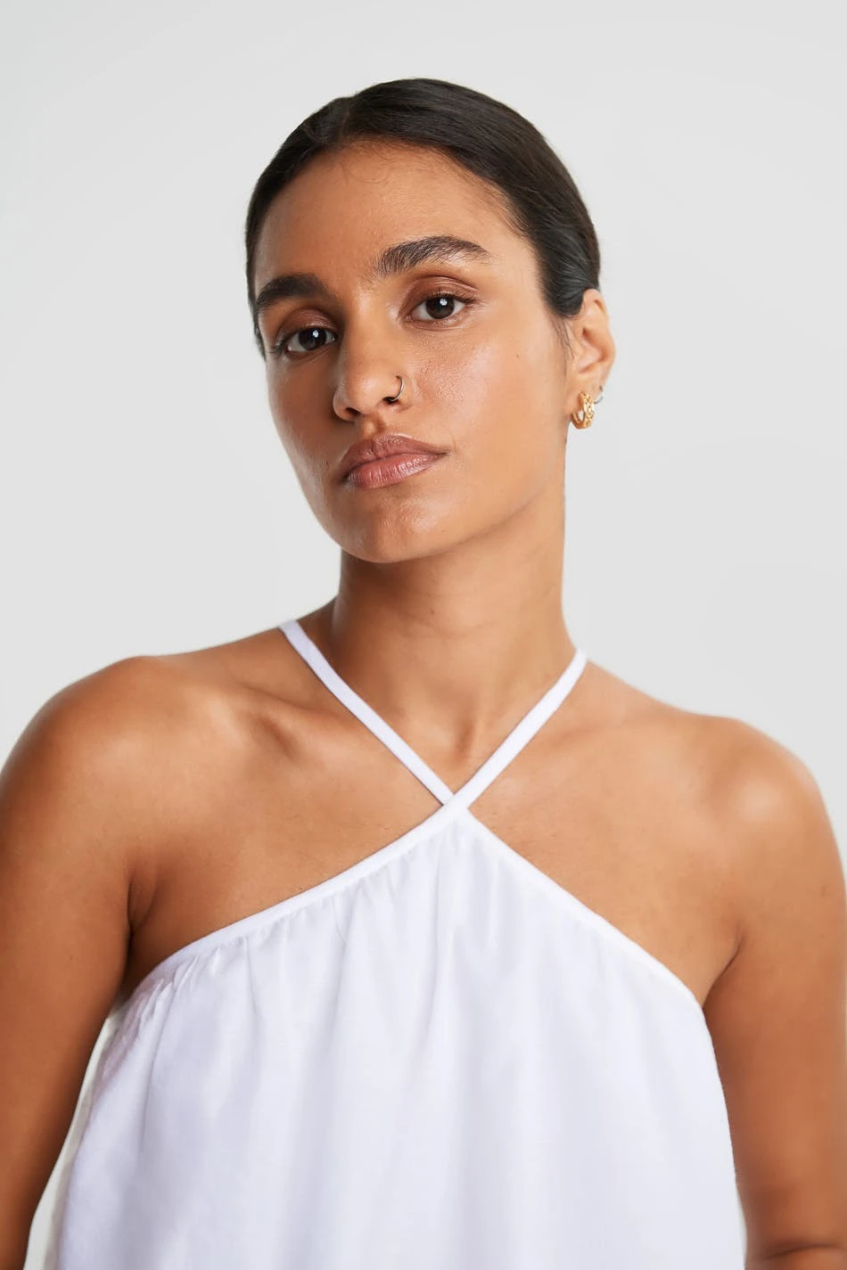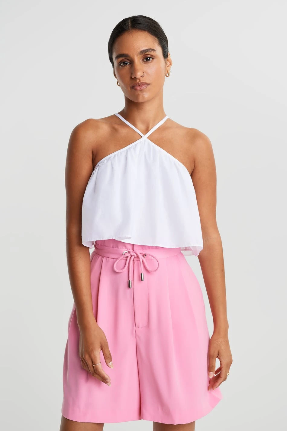 Loose cropped singlet. Spaghetti straps. Cotton voile, double layers. Supplier: Paramount Products PVT. LTD Production unit: Paramount Products PVT. LTD