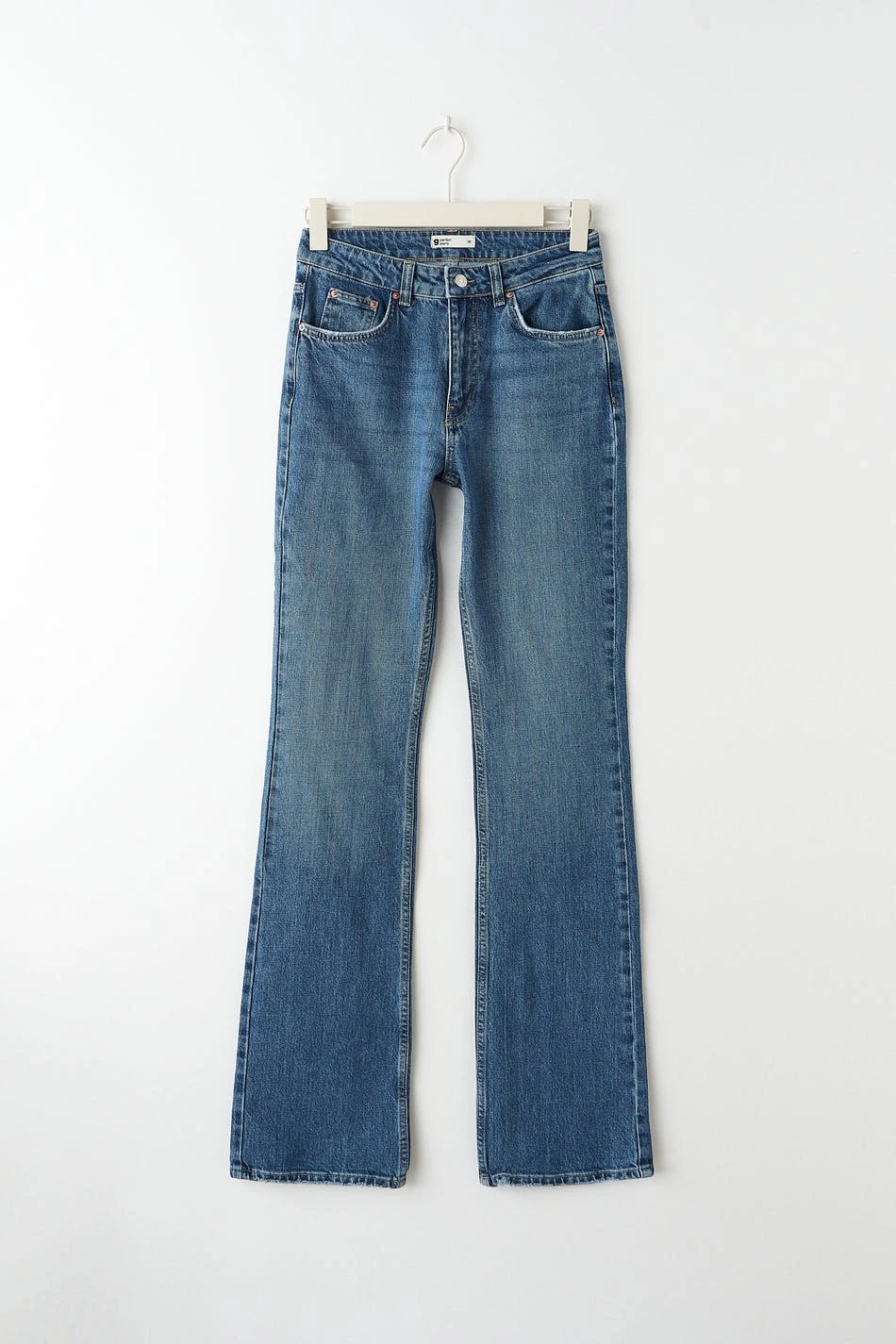 Boot cut jeans with slim fit in low stretch denim. The jeans is dark blue and has mid waist. It has flared trouser legs with full length, fly with zip, raw hemline at the bottom and extra long leg length. Perfect for those who are 175 cm (5 ft 9 in.) or taller. Use our size guide to find your size.