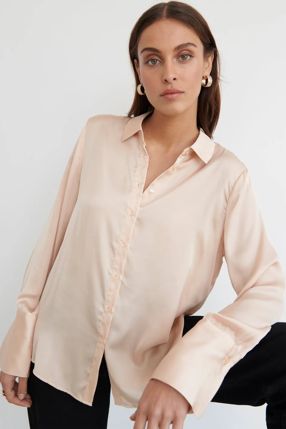 Gina Tricot Linnea Satin Shirt Beige Blush