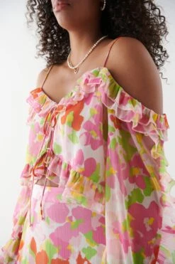 Tube top in satin with pleat at the front. The top is white and has figure-hugging fit. It has zip in the side seam and smocking at the back.